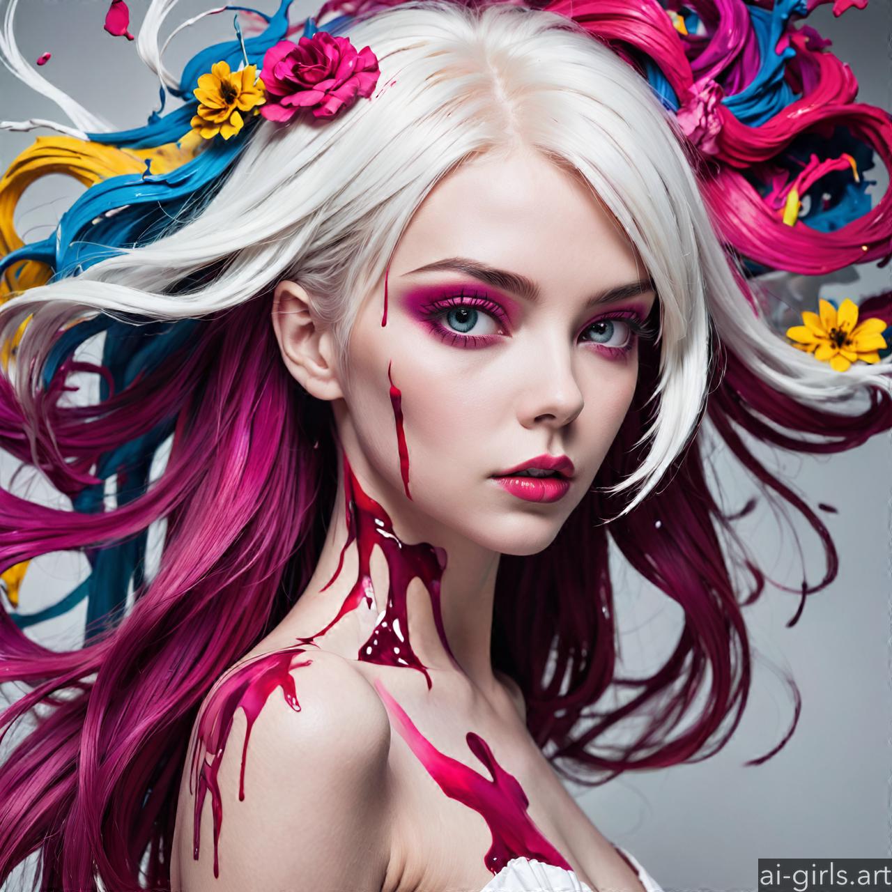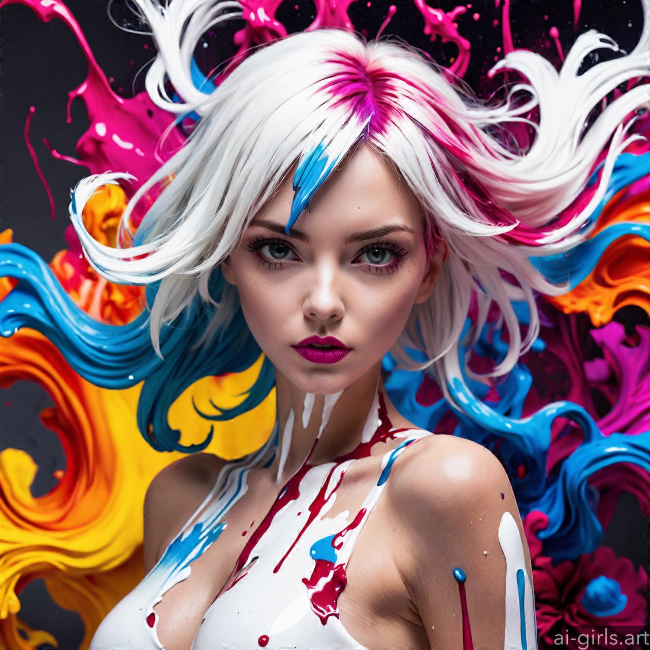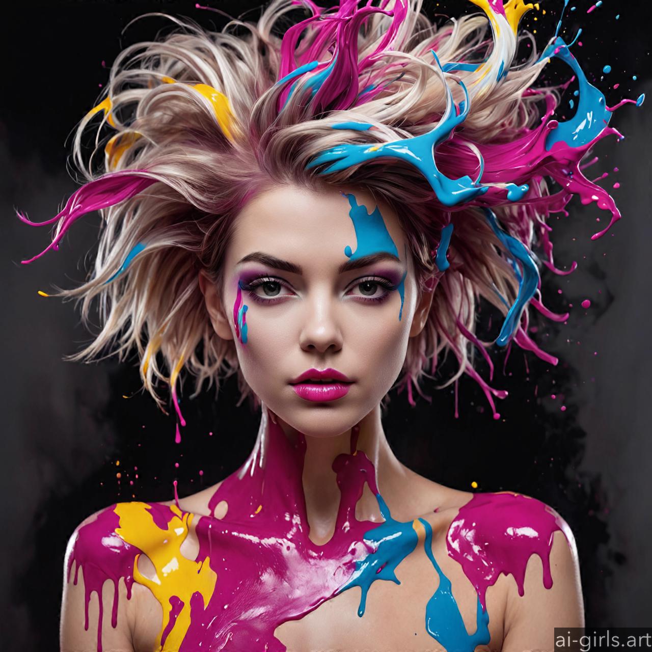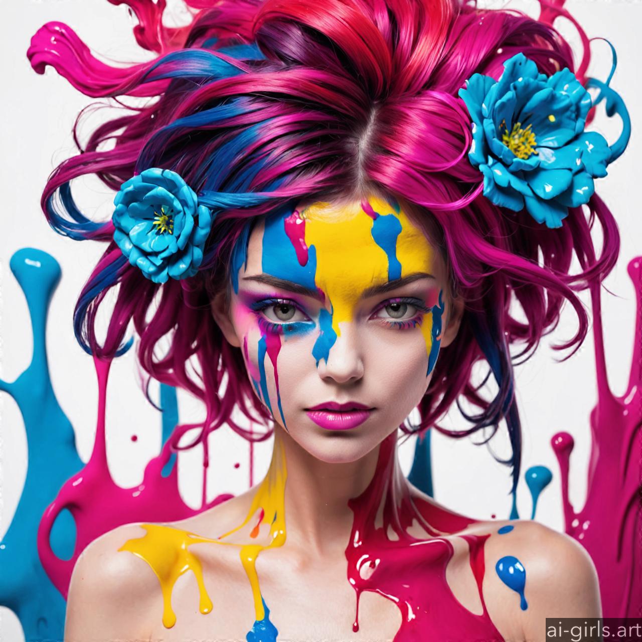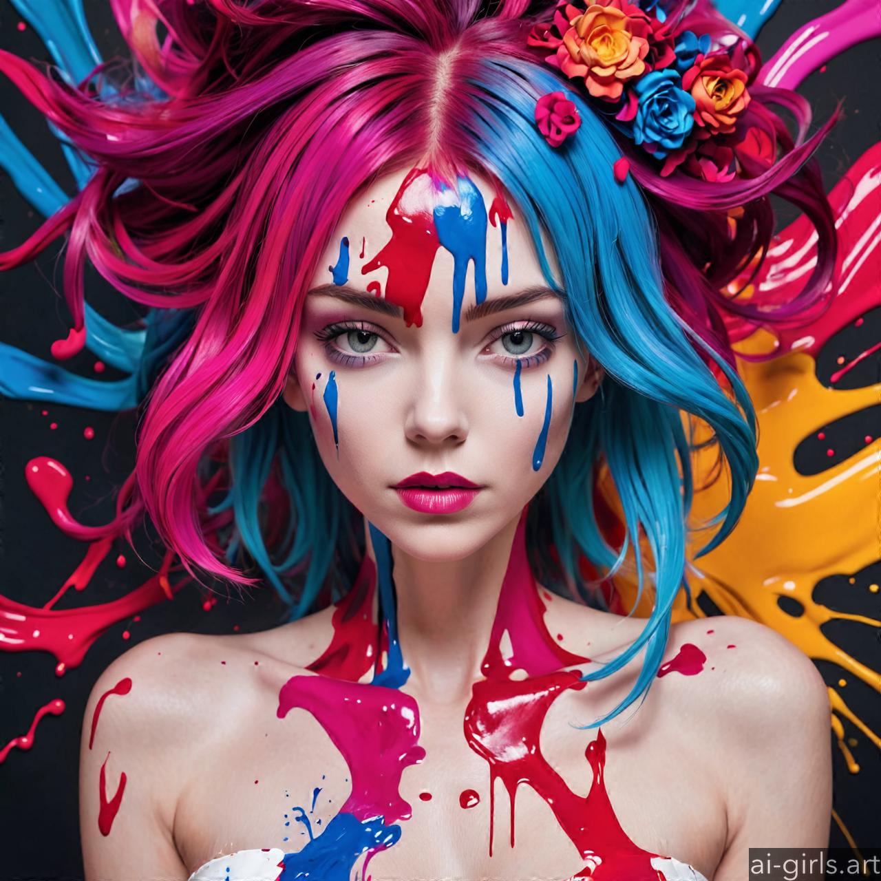 Woman colorful stains portraits are vibrant and dynamic works of art that employ bold splashes of color to create striking visual compositions. These portraits often feature women as the focal point, with their features and expressions rendered against a backdrop of abstract and colorful stains. The use of vibrant hues and fluid shapes adds energy and movement to the artwork, infusing it with a sense of liveliness and spontaneity. Each portrait is a unique expression of creativity, with the colorful stains serving as both a decorative element and a means of conveying emotion and mood.