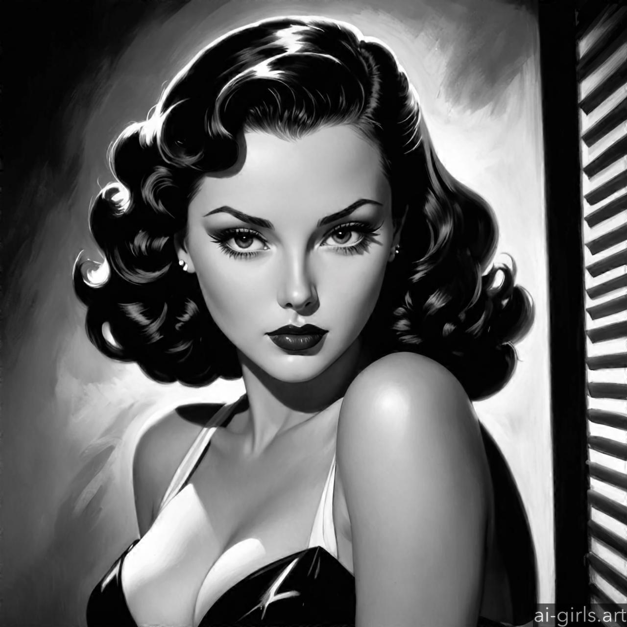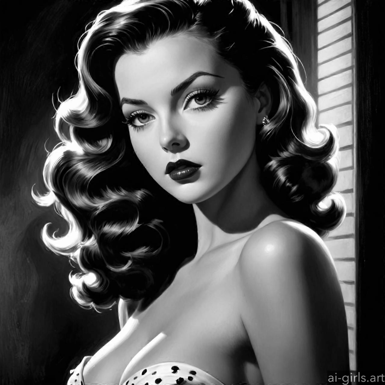 Woman film noir portraits evoke the mystique and allure of classic noir cinema through captivating imagery. Inspired by the chiaroscuro lighting and dramatic aesthetics of film noir, these portraits often feature women in enigmatic poses, shrouded in shadows and imbued with a sense of intrigue. With a focus on mood, atmosphere, and storytelling, these portraits skillfully capture the essence of the film noir genre, transporting viewers to a bygone era of mystery and suspense.