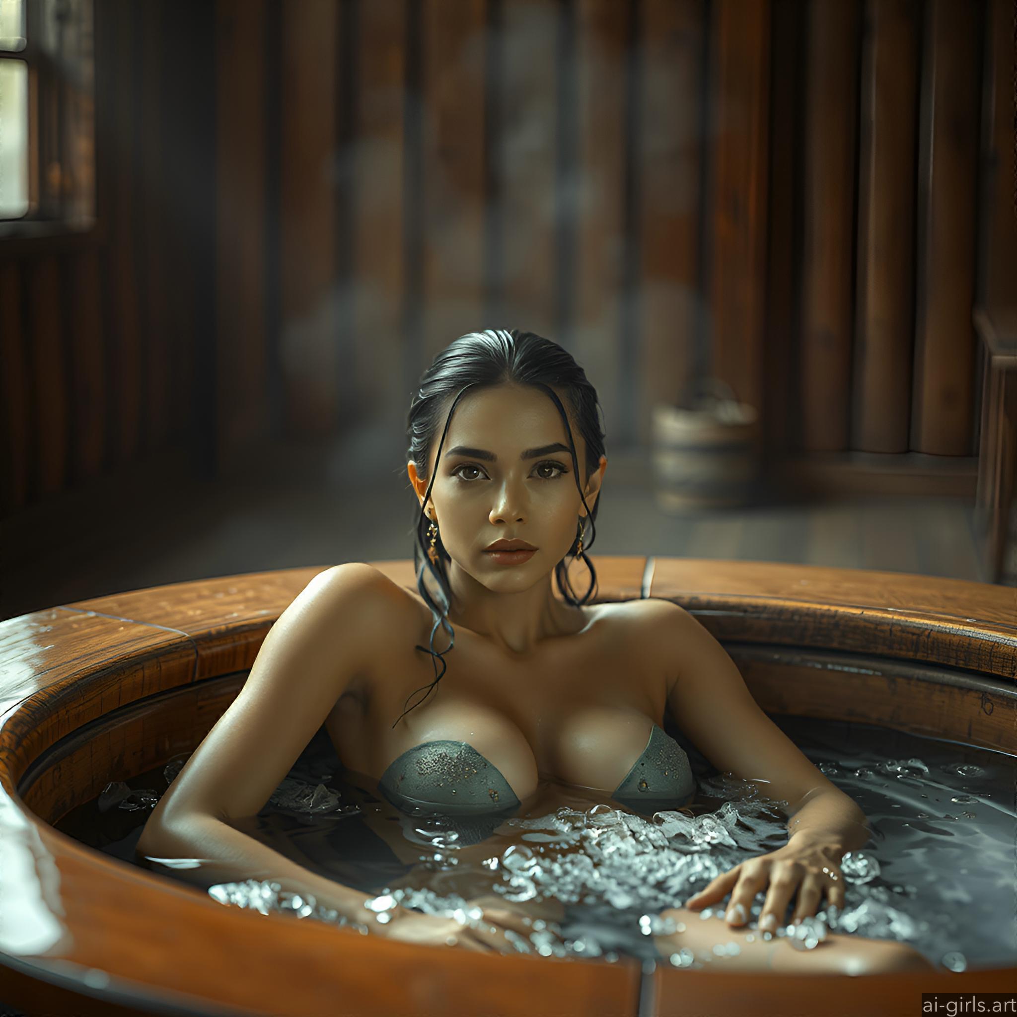 Woman in a jacuzzi.