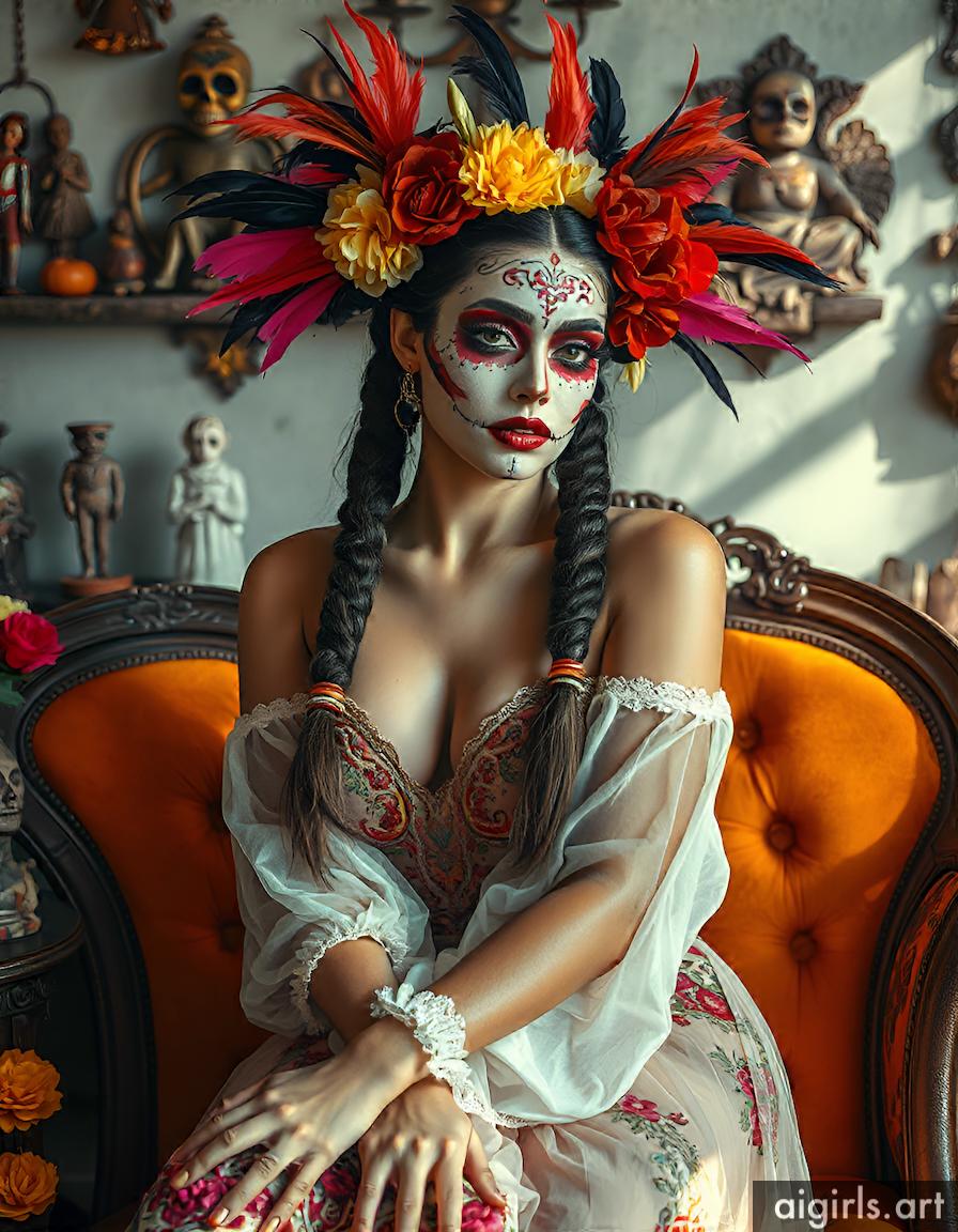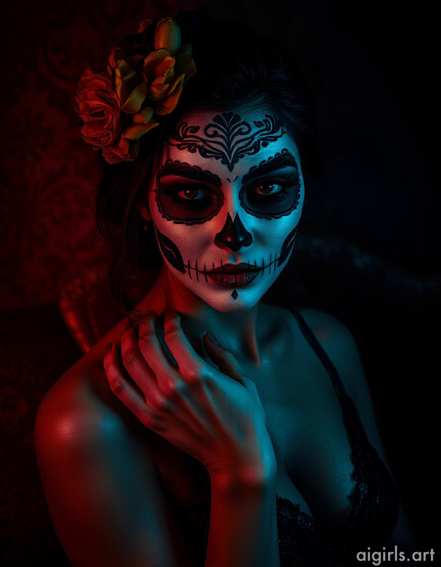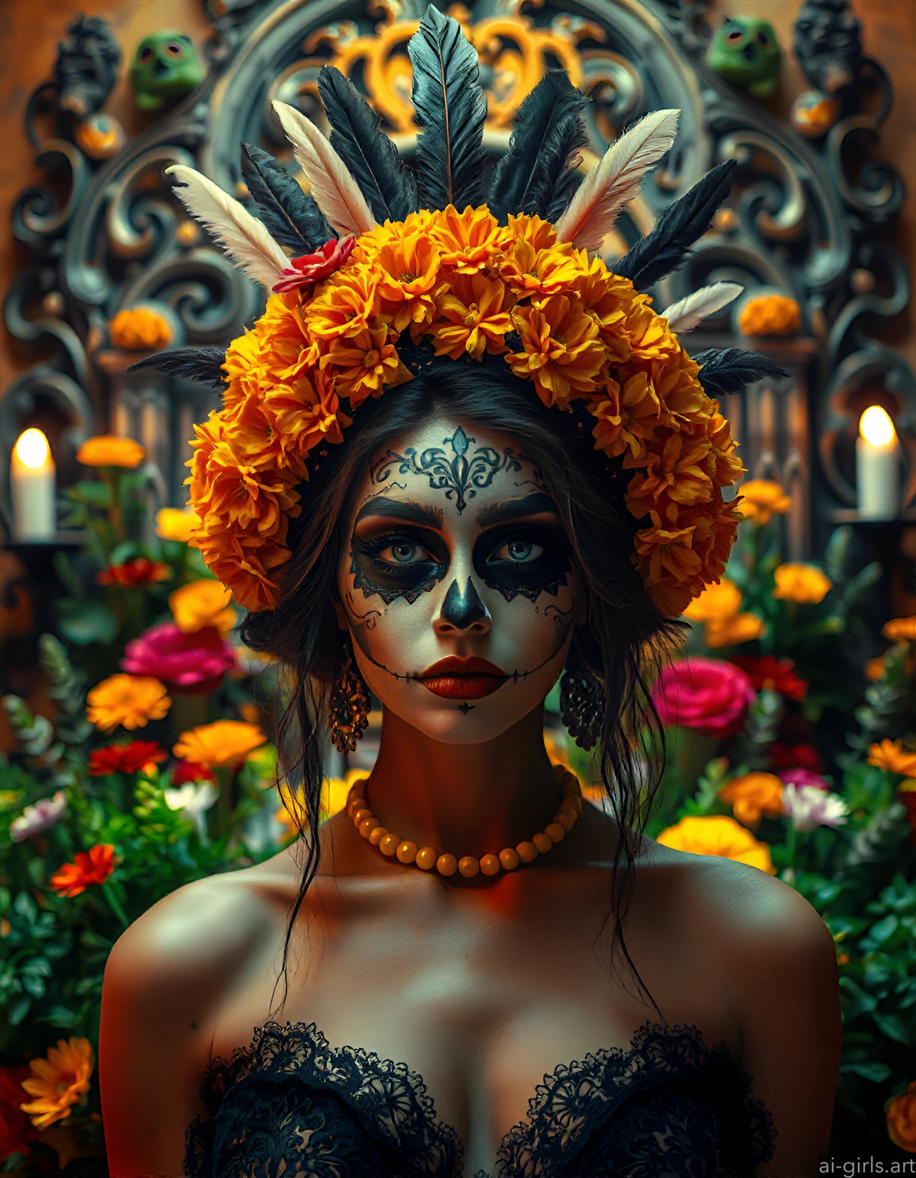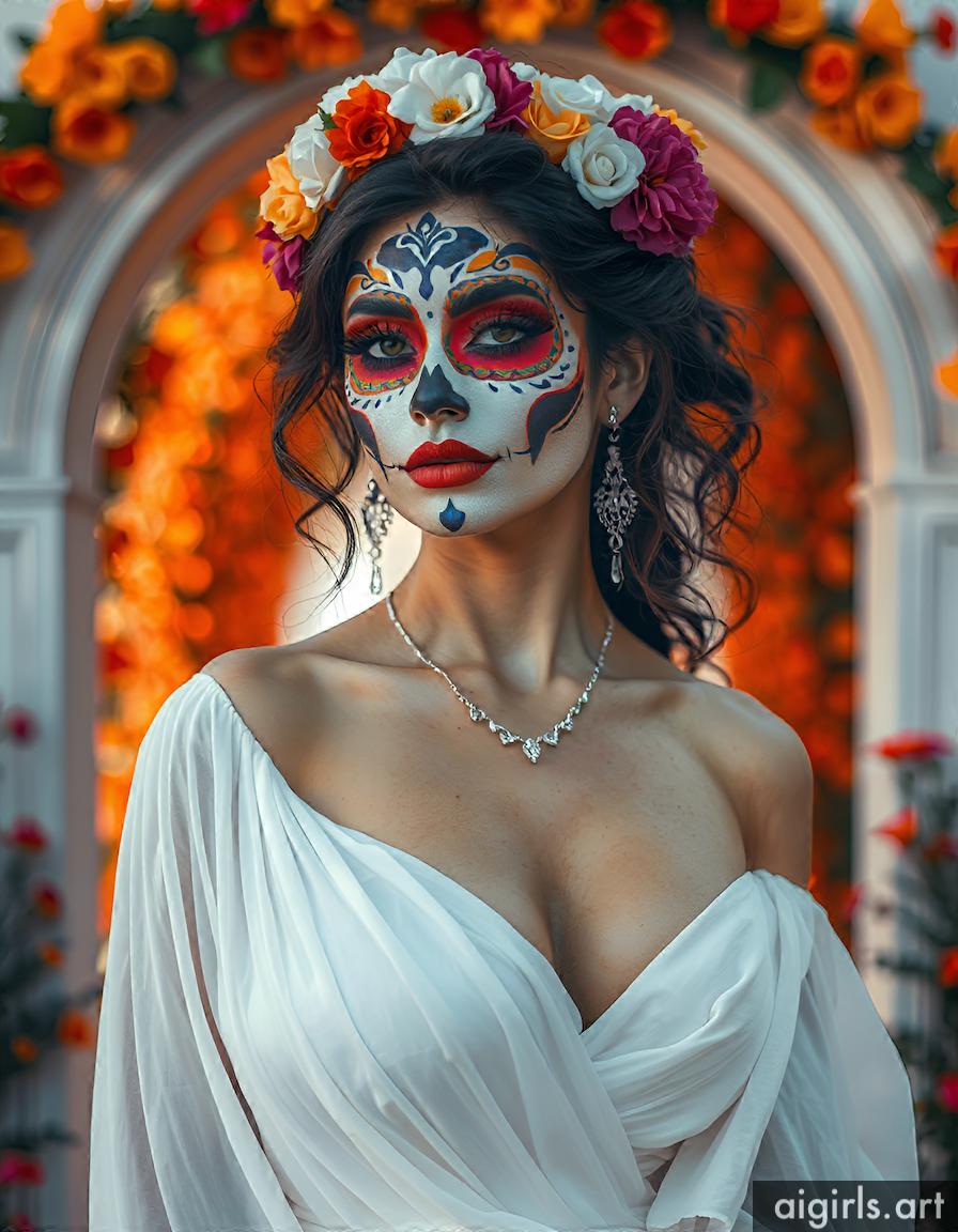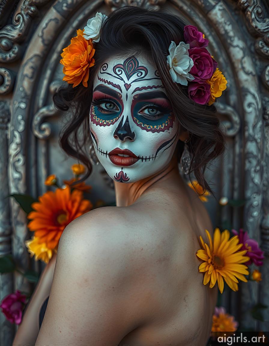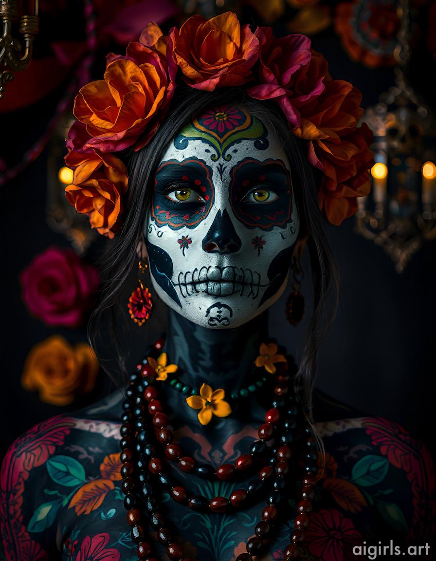 AI girls with dia de los muertos makeup