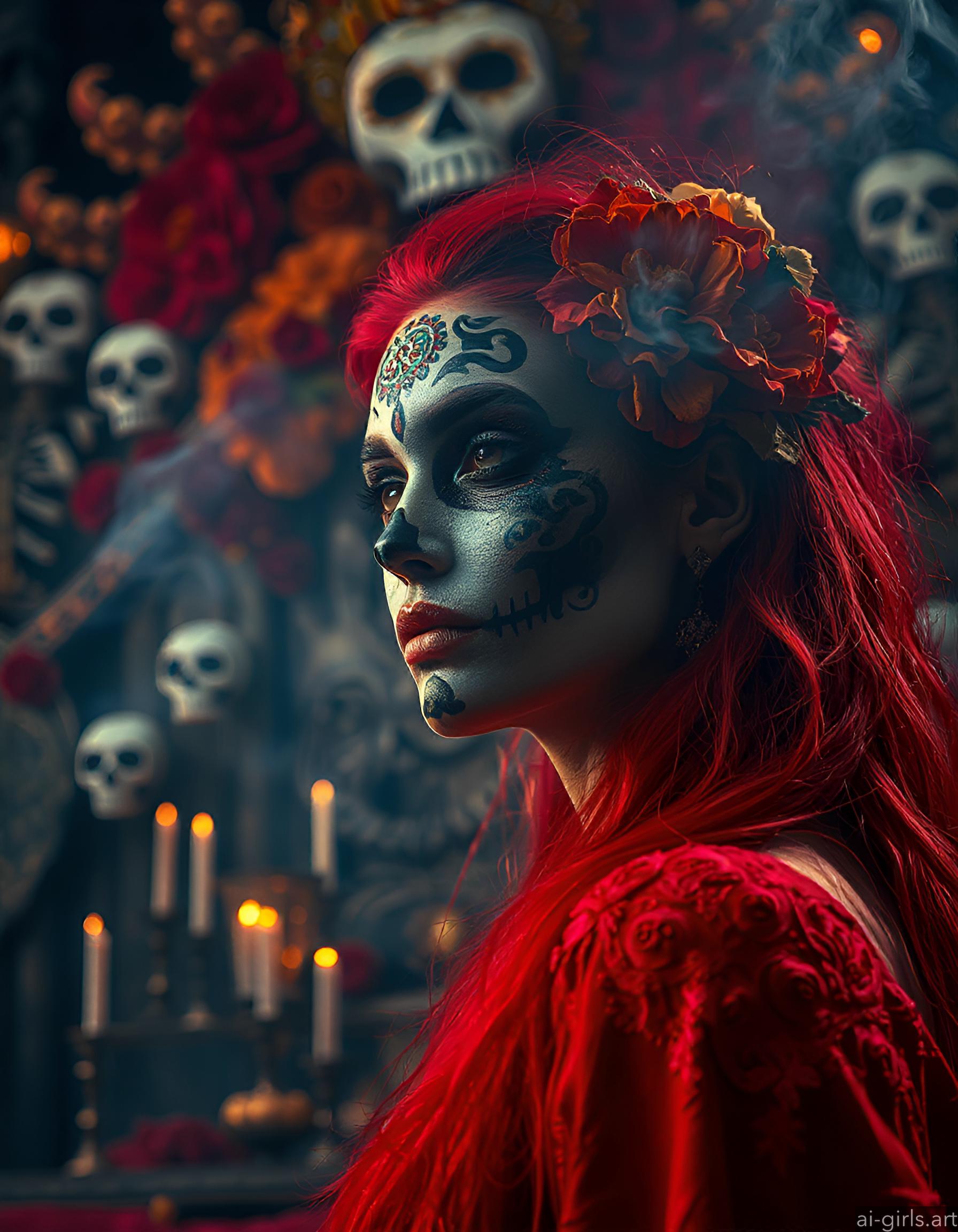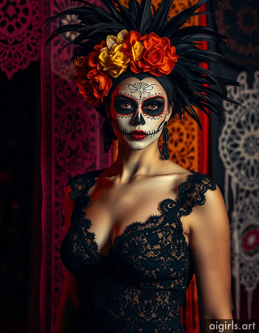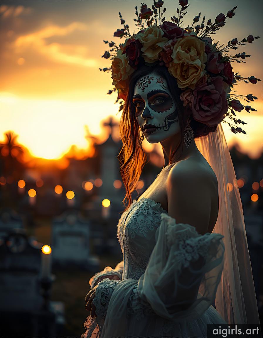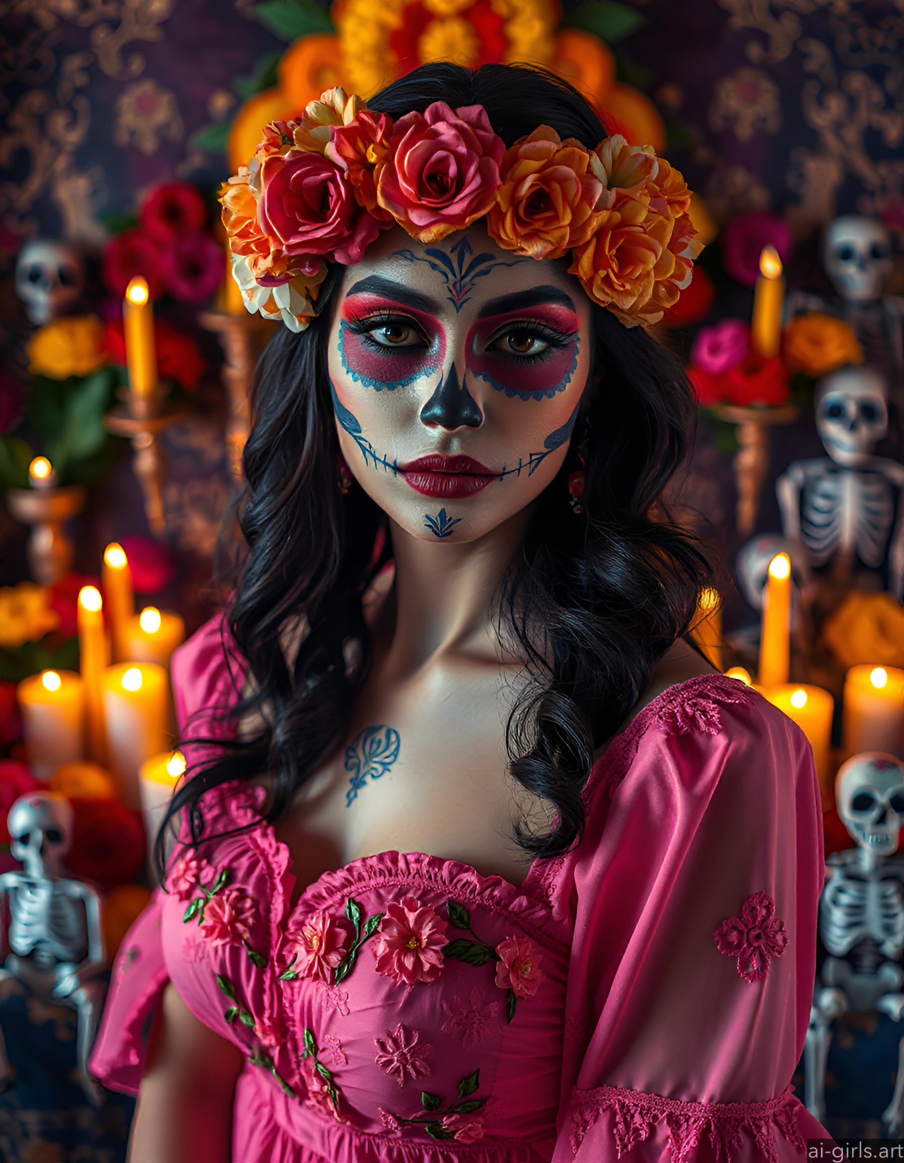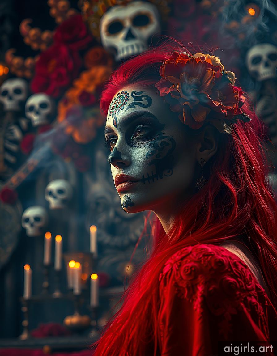 AI girls with dia de los muertos makeup
