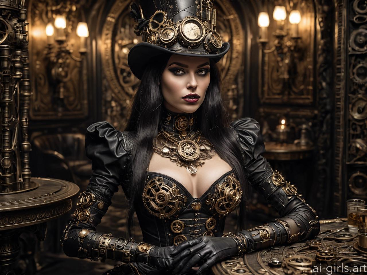 Steampunk woman in a cafe