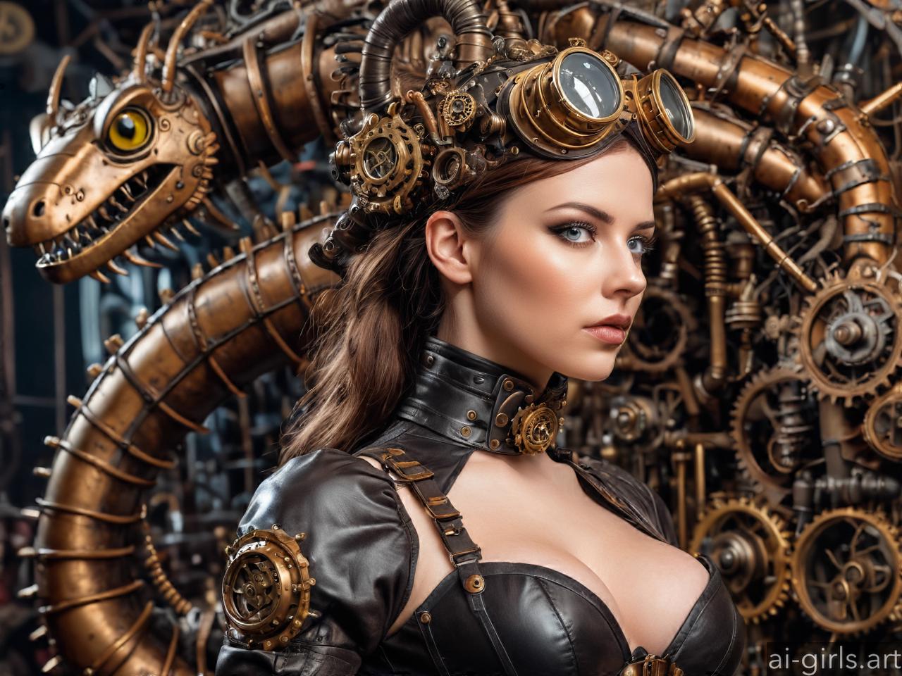 Steampunk girl with mecanical animals