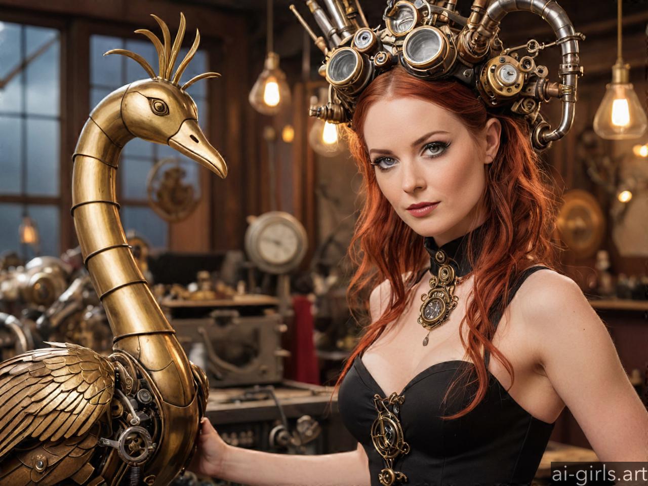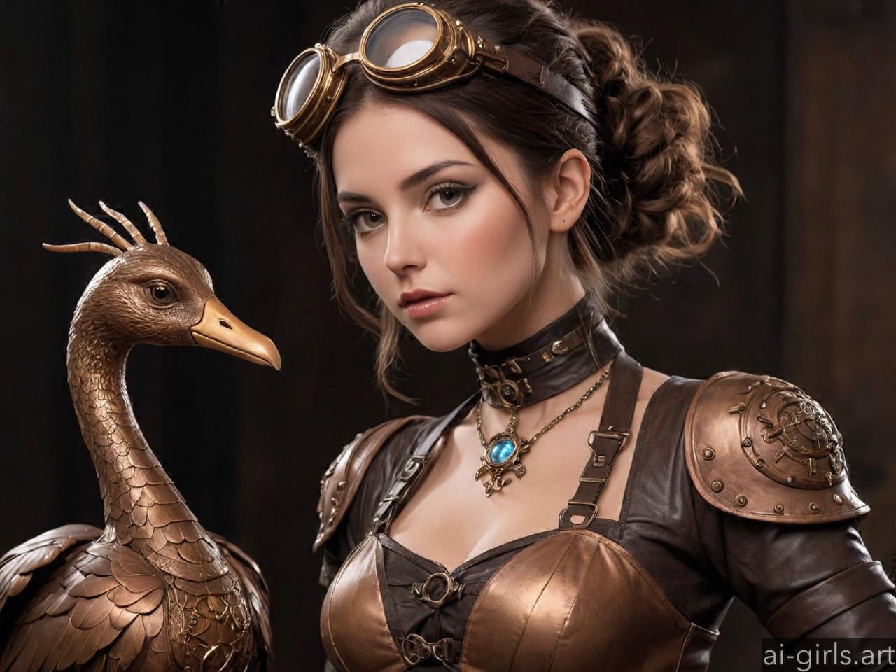 Steampunk girl with mecanical animals.